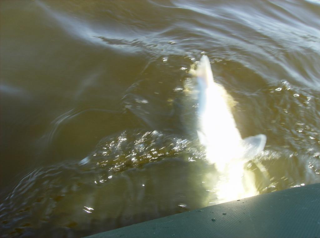Žuvis prašo valo, kiek patraškėjas ritės stabdis nutyla, ir sunkiai sukdamas ritę traukiuosi žuvį link savęs. Prie valties nenori kilti į viršų, bet šiek tiek pakovojus, pavyksta žuvį parsitraukti. Ant paviršiaus suspidi nemažas karšis, tiesa, didžiausias mano gyvenime
