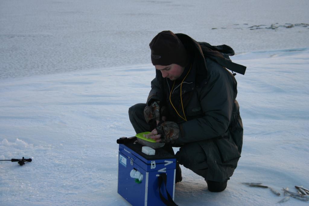 Ir kokia gi žūklė be pramogų kai vidurdienį stoja visiška nekiba :) sugalvojom ekečių gręžimo varžybėles pasidaryt :[anuol