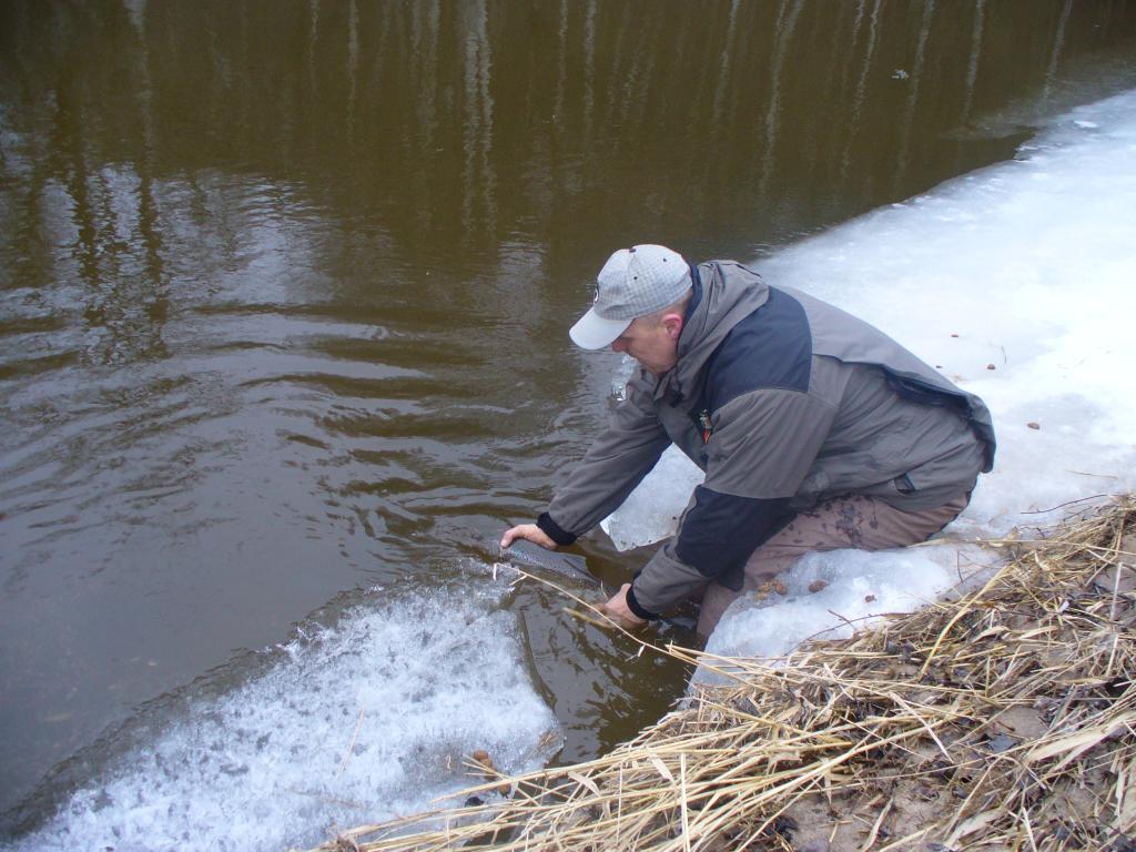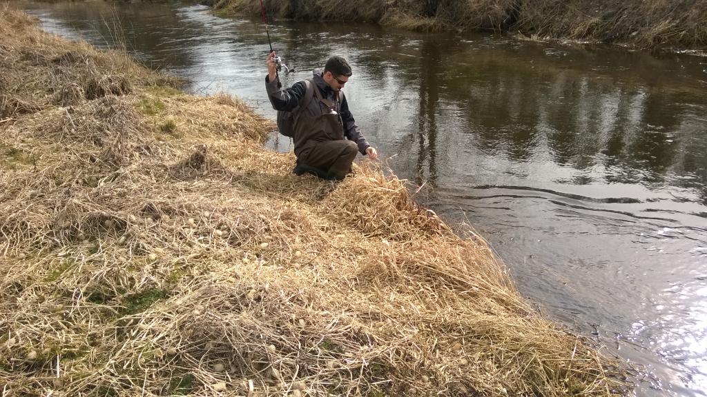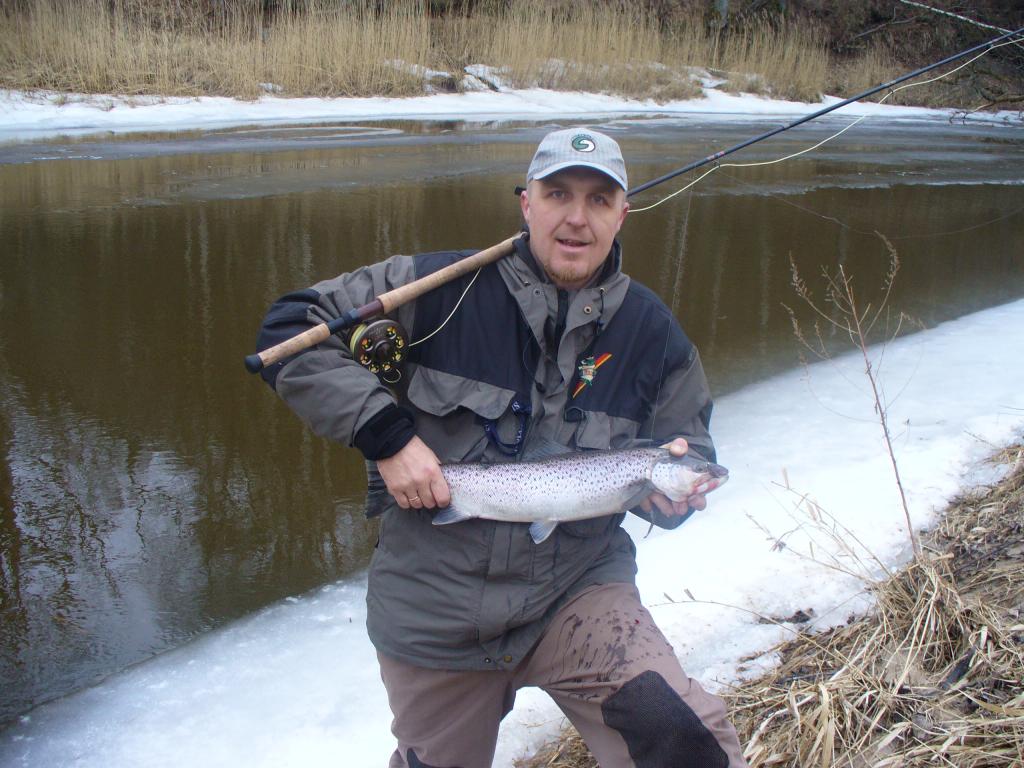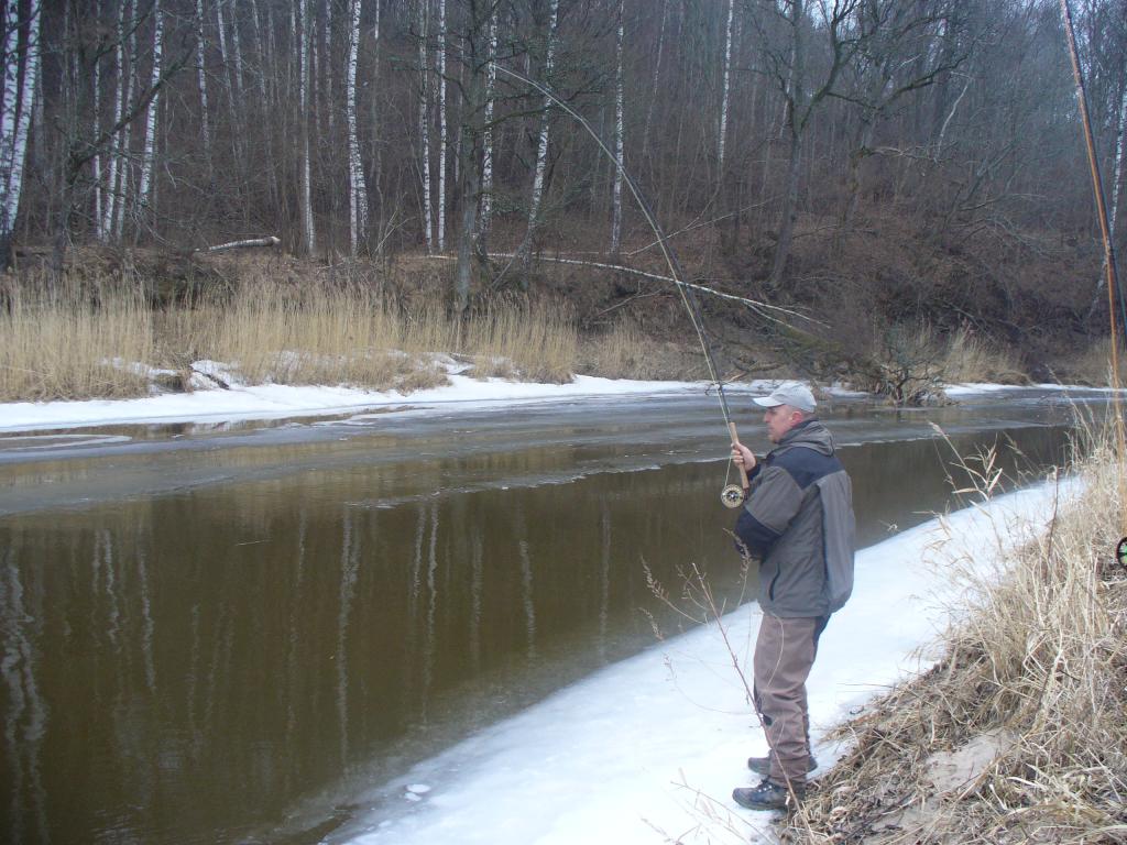 Žiema baigiasi, žemaitijoj jau nelabai yra kur užlipti ant ledo, o žvejot norisi ir toks geras oras... Reikia kažką daryti... Imu spiningą, lekiu prie upės, saulė šviečia, sunku šlakį suviliot bus (mintyse pasakau), 2val pamėtęs, pakaitaliojęs vobleriukus kibimo nesulaukiu, dedu sukriukę, sviedžiu gal antrą kartą... SĖDI, traukiu apie 3min, prie kranto prisivesti neina, jei prisivedi, duoda atgal į upės vidurį, kad net stabdis kaista :lol: . Šypsena iki ausų, šeip ne taip paimu... Antrasis šlakis! ''plot Ir aišku paleidžiam. :/braj;