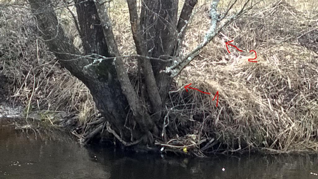 Prieiname prie perspektyvios vietelės ir žiūrime, kad ant šakos kabo brakušų plūdė (1), nusprendžiame, kad perspektyvias vietas renkamės teisingai :) ir pradedame šukuoti, viskas baigiasi pakabinus voblerį netoli plūdės (2) :)