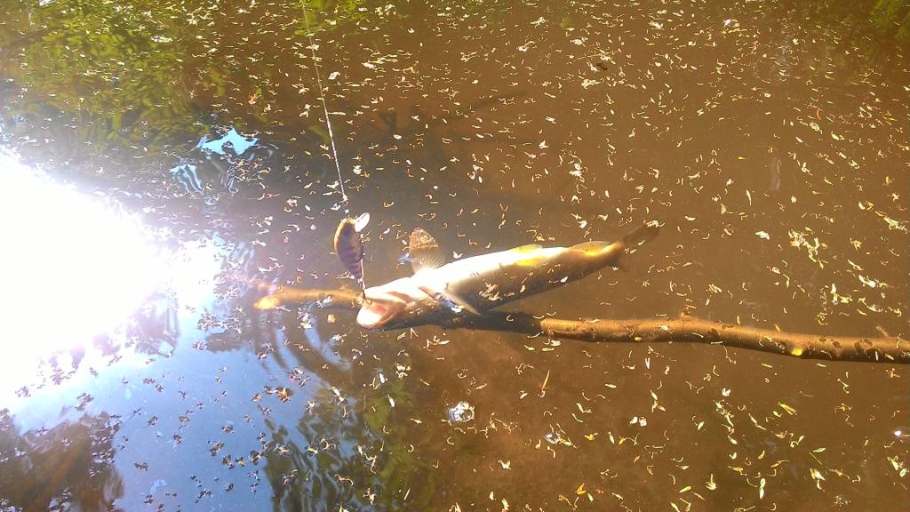 Iš vienos slėptuvės buvo gerulis išlindęs upėtakis, drąsiai virs 50cm turėjo būti, bet tačiau deja, ne šiandien ir ne man. Du kartus kando voblerį, bet nepataikė. Pakeitus vobleriuką, dar kartą išlindo ir atgal namo. Kitą kartą susitiksim, juk žinau kur jo namai :grin: