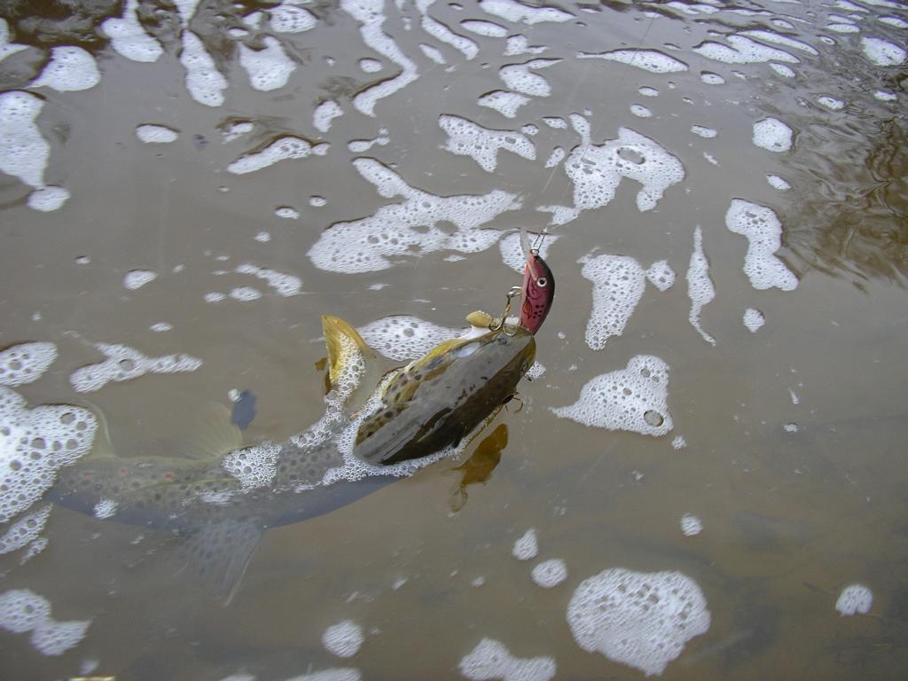 [quote="Vilkas"]Apturėjau dar vieną gerą žvejybą. 5 kibimai, bet tik 1 realizuotas, stambesnis egzempliorius tik piktai pataškė vandenį, vanduo tai murzinas kaip reikalas. Gaila bet šis vobleris liko kabot šakose.