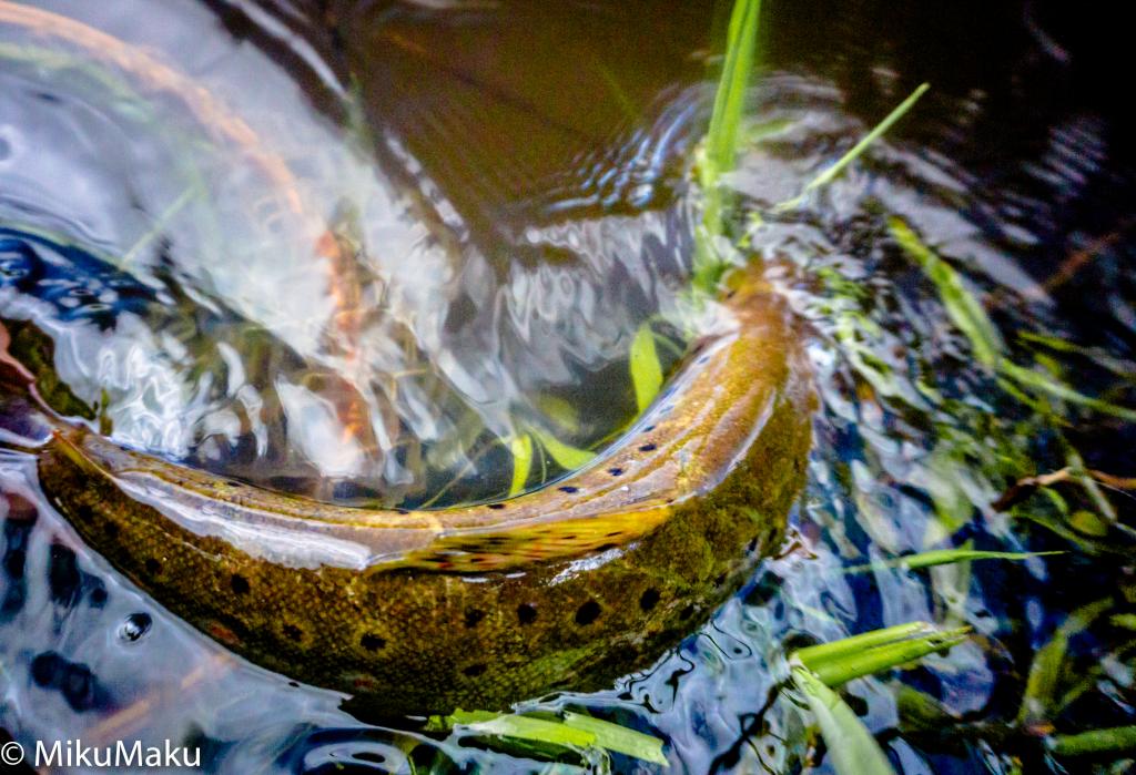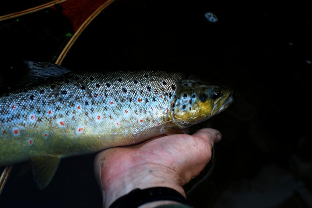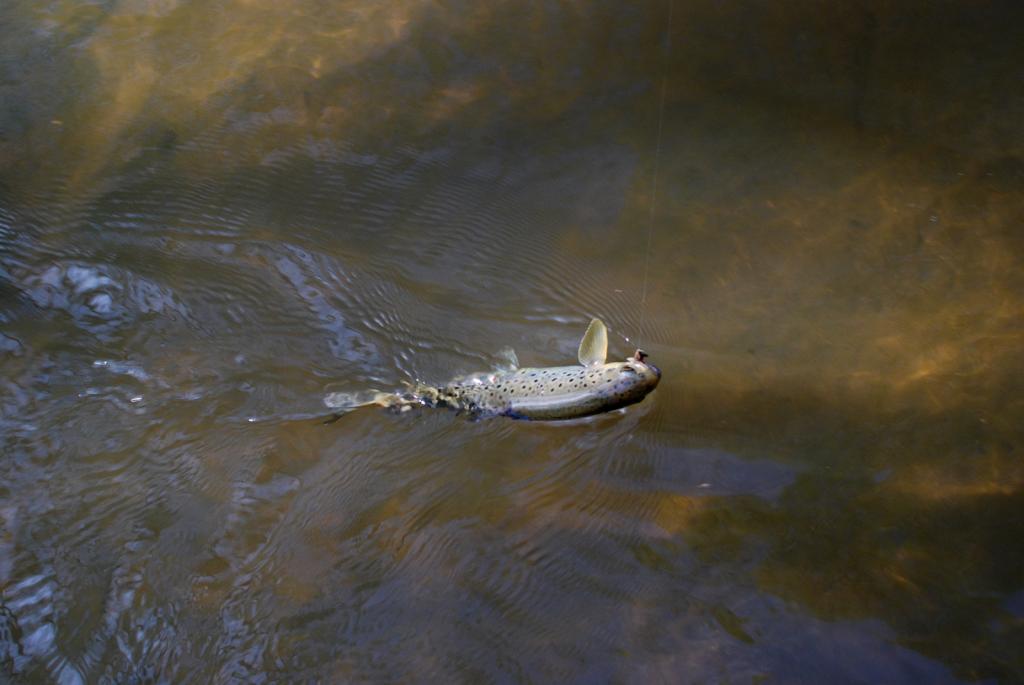 Praeitą savaitę po darbo pasivaikščiota vienu upeliuku. Pamaitinti uodai :-niak' ypač vakarop. Pagauta pora šapaliokų, keli maži upėtakiukai, vienas 31 cm ir šis 35 cm, kol kas mano didžiausias. Labai norėjau išmatuoti bei nufotografuoti, tai minutėlei buvo ištrauktas krantan ir po to sėkmingai paleistas.
