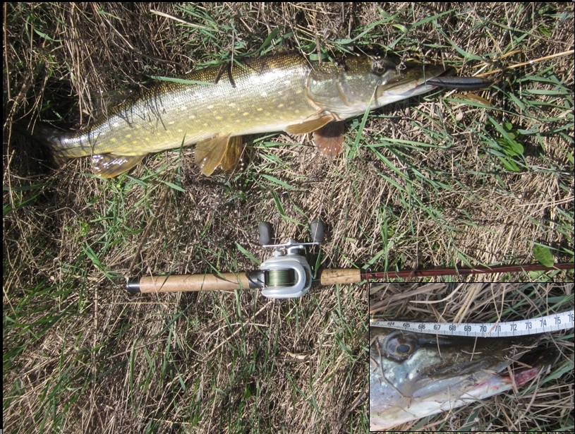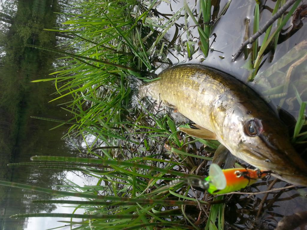 Užmetus pliaukštelėjo taip, kad uošvis pamanė, jog stogas pavažiavo ir plytas į vandenį pradėjau mėtyti :grin: Bet plyta pasirodo "dirba", pora kartų patvičinau ir bumt smūgis. Ėėė juk tai pirma žuvis ant savadarbio!! ''plot šypsena iki ausų. Pritraukus arčiau, žuvis paprašo valo ir parodo, kad po neršto dar liko jėgų. Tuo pačiu pamaniau, kad gal bus didžiausia kokią esu pagavęs, nes kol kas tik 1.7 kg :oops: Pasirodžius lydekai neliko abejonių, ši tikrai didesnė. Stveriu už sprando ir laimingas strikinėju ant kranto ''plot. 3.1 kg, 79 cm