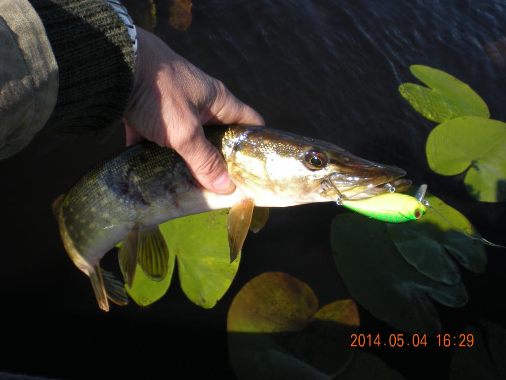 Švenčiant Velykas su uošviu nutarėm, kad antrą dieną reik palikt žmonas namuose ir atidaryti lydekų sezoną. Visų kiaušinių vis tiek nesuvalgysi :lol: . Saulei vos patekėjus mes jau ant upės kranto. Patikrinus keletą duobių, jokio rezultato. Nusprendžiam jas palikti ramybėj, keliaujam link įlankos. O ten ilgai laukti nereikėjo, vos keli metimai ir sezonas atidarytas ''plot 800 gr.